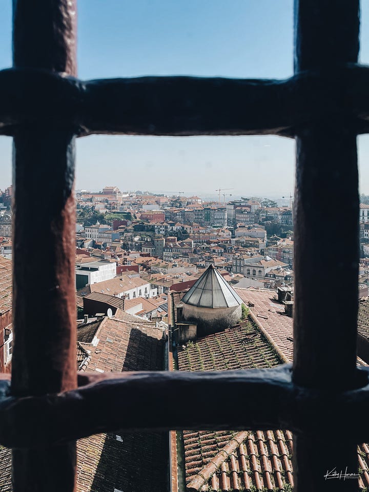 View of Porto through the bars of the old city jail (now the Museum of Photography)