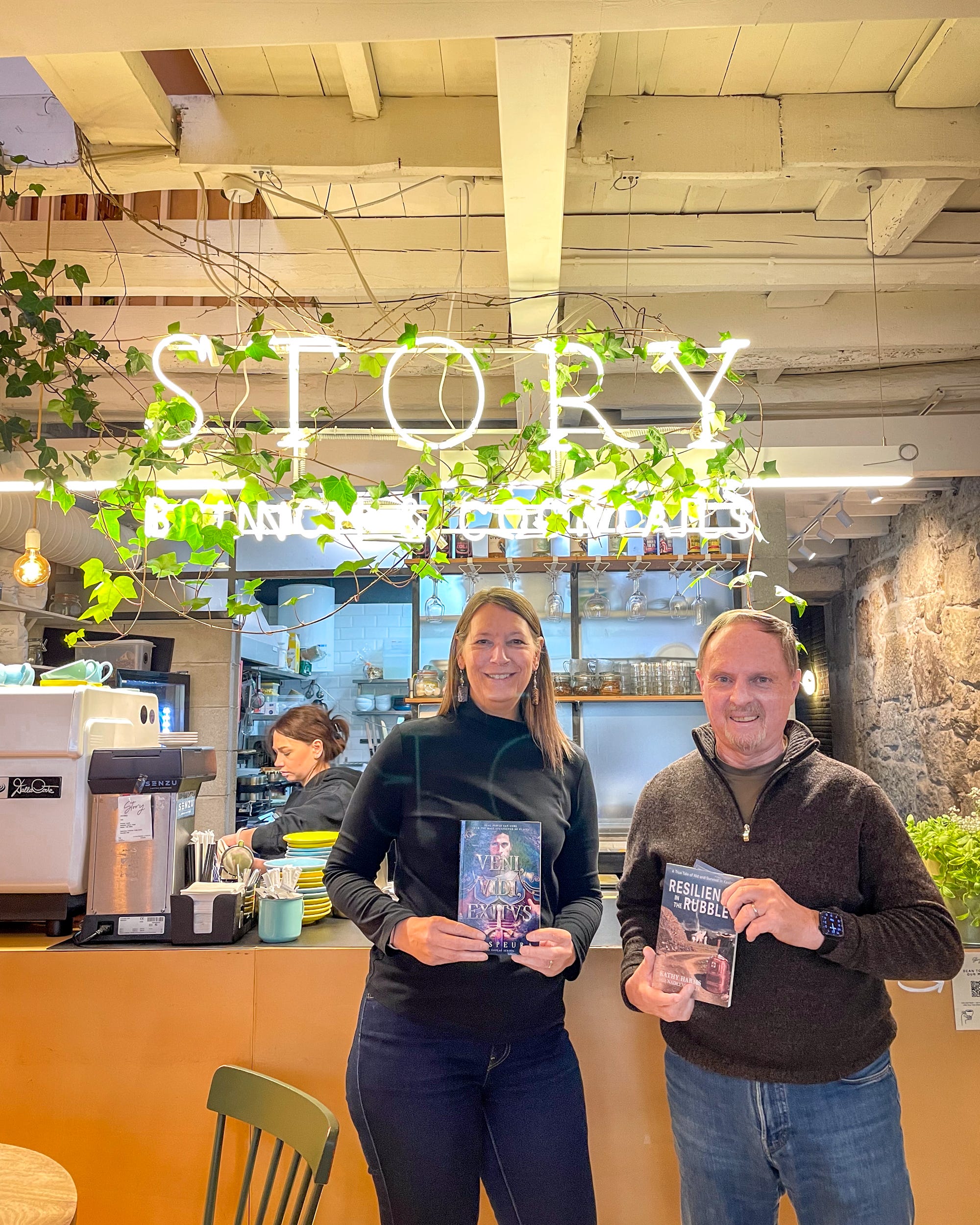 DC and I were taking a slightly different approaches with our books, and so we continued our conversations outside the group to compare notes. Although we live in different regions of Portugal, we’ve stayed in touch ever since. Last week, when he and his wife were in Porto, we met at an aptly named café to exchange books and talk about writing – and community. It was an energizing conversation.