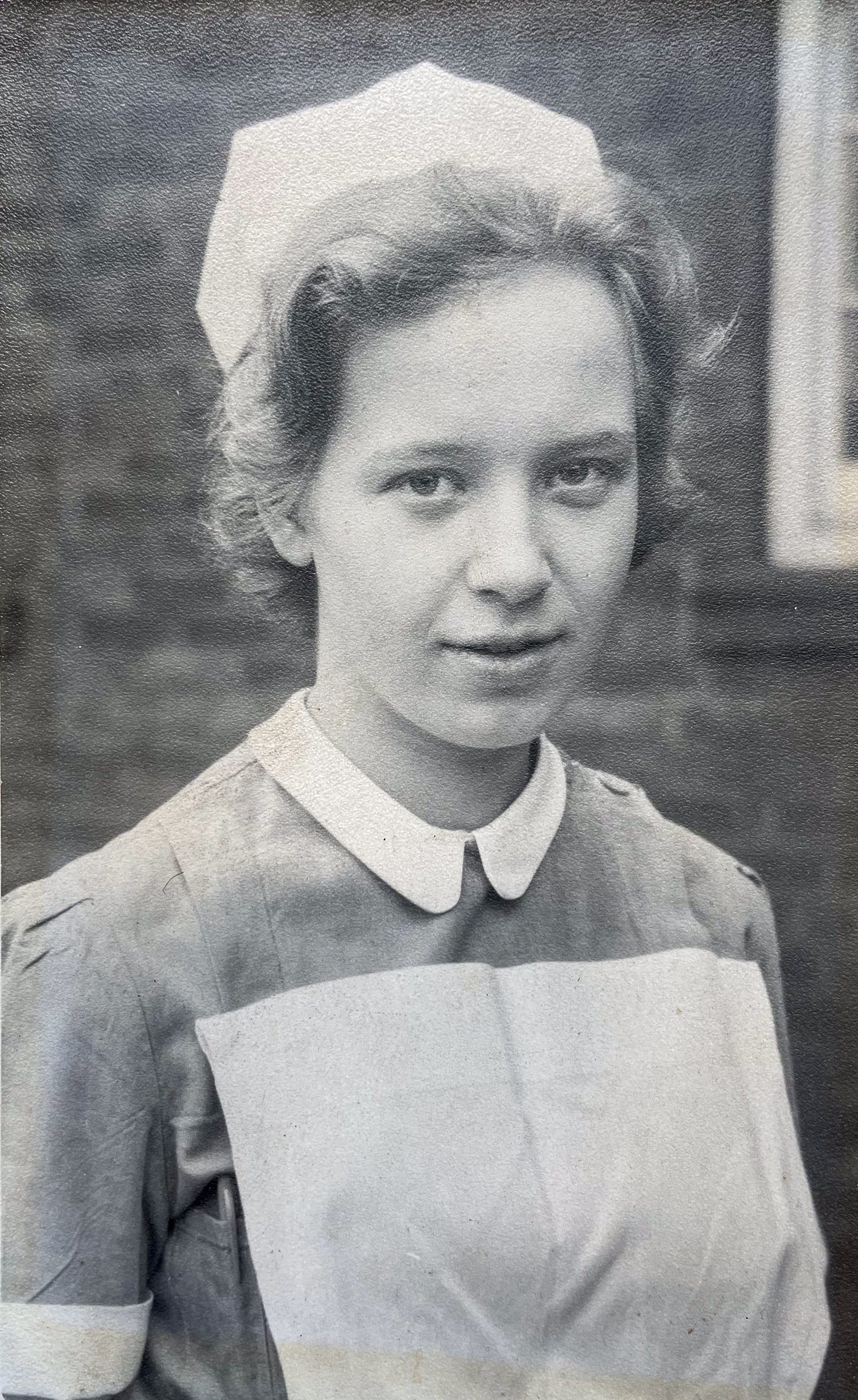 Finally, after four long months of anticipation, the first day of nurses’ training came. Not unlike the start of grammar school years earlier, the uniform proved to be the most concerning issue of the day. Although there was a process to get measured for the uniform - a green dress with white button-on cuffs and collars that needed to be starched - the dresses seemed to only come in one size. Trish, petite at 5'3" and slightly built, grimly concluded that the dresses were obviously sized for 7-foot-tall, 18-stone footballers. A green belt was part of the uniform, a critical element, Trish thought. The problem was, the belts were only issued to second-year and third-year students. Although the uniform fittings occurred in the sewing room, there was only so much alteration that was possible on such a large garment that was to be worn by such a slight person. By the end of the session, Trish accepted she would be swimming in her uniform, but at least it had her name carefully sewn into the collar. A small stack of white aprons, and a rather puzzling starched white piece of material with a button on one end, and a buttonhole on the other completed her uniform issue. The latter item was a nurse’s cap, and the staff member assured Trish it was more straightforward to wear than it appeared in its freshly laundered form.