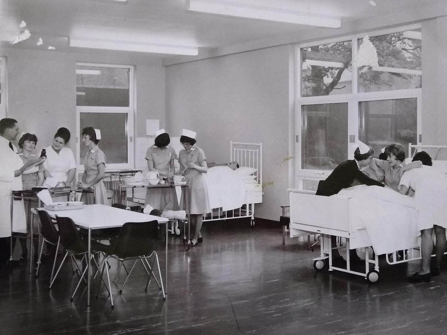 They listened to lectures about etiquette in a nursing context - for example, who is senior to a PTS student? The answer to that was easy - everyone was - even the cohort of students just ahead of you. A PTS student needed to give all senior students and staff the right of way in corridors, they needed to hold open doors for them, and they needed to always be polite, in all circumstances.