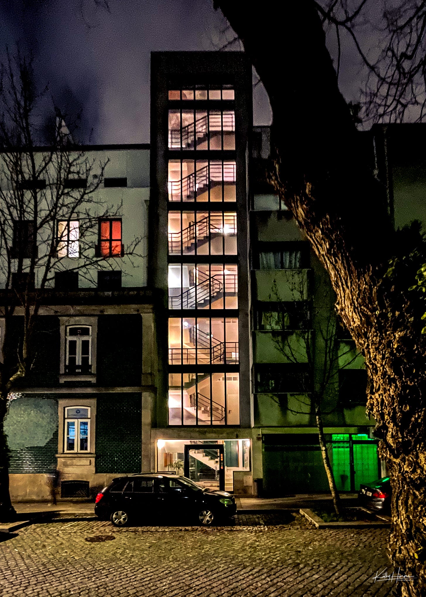 I haven’t been inspired to venture out into the rain to make new photographs over the last few weeks, however, on our way home from dinner, I enjoyed the lights inside this staircase: